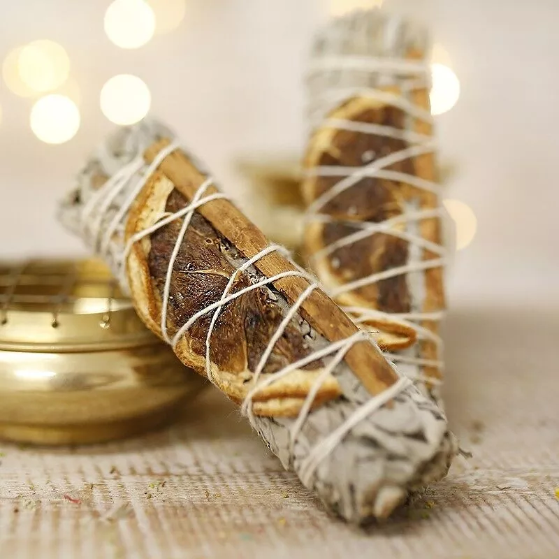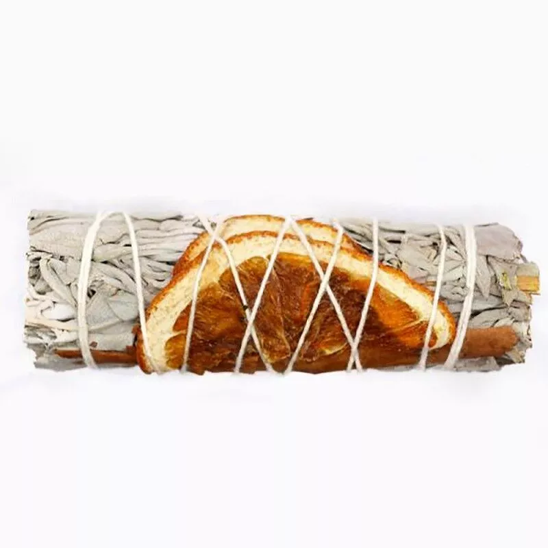 Este atado purificante de salvia blanca con naranja y canela combina tres elementos naturales utilizados en rituales energéticos. La salvia blanca es conocida por su capacidad de purificar espacios, la naranja aporta frescura y vitalidad, y la canela añade calidez y una sensación reconfortante.