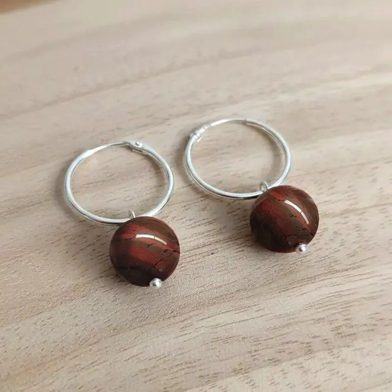 Pendientes de Aro en Plata 925 y Jaspe Sardo (8mm) | Estilo Orgánico