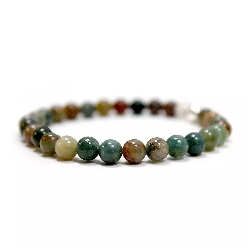 Cada piedra de ágata presenta variaciones naturales de color y textura, lo que convierte cada pulsera en una pieza única. La ágata india es una de las piedras más valoradas en joyería por su belleza orgánica y su amplia gama de tonos naturales.
